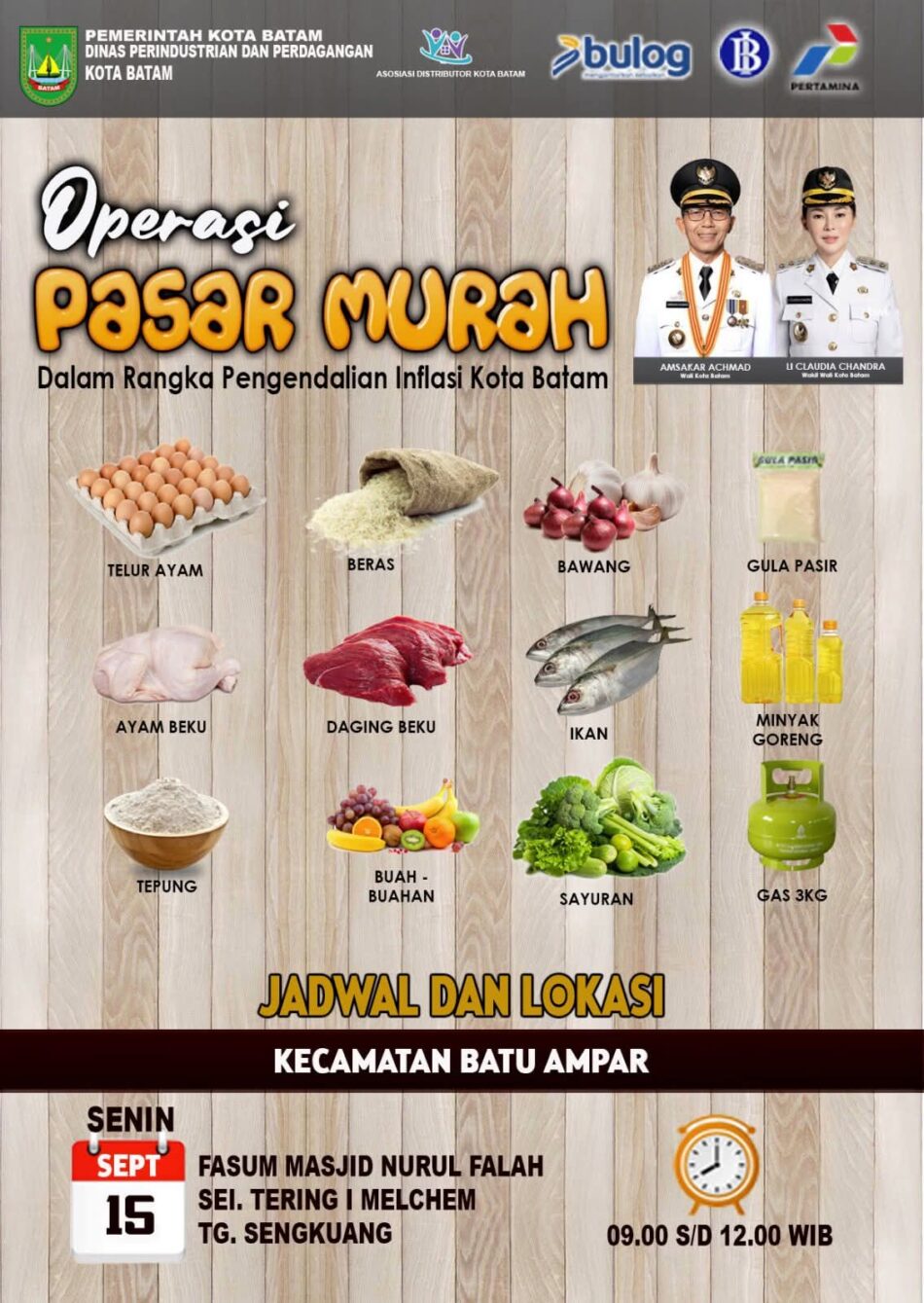 Kepala Dinas Perindustrian dan Perdagangan Kota Batam, Gustian Riau, menyebut bahwa pasar murah ini menyediakan semua yang dibutuhkan rumah tangga, dari bahan makanan dasar seperti beras dan minyak goreng, hingga bahan pelengkap seperti bawang, cabai, dan sayuran segar.