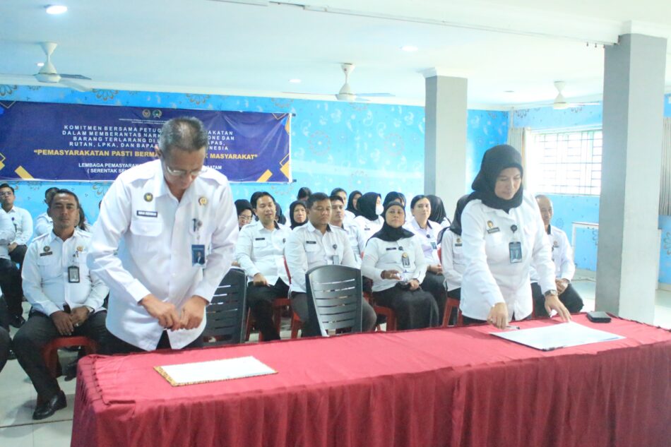 Sorot1.id — Lingkungan yang aman dan bersih dari barang terlarang adalah kunci sukses pembinaan Anak Binaan. Untuk mewujudkan hal itu, Lembaga Pembinaan Khusus Anak (LPKA) Kelas II Batam secara kolektif menandatangani komitmen bersama jajaran Pemasyarakatan.