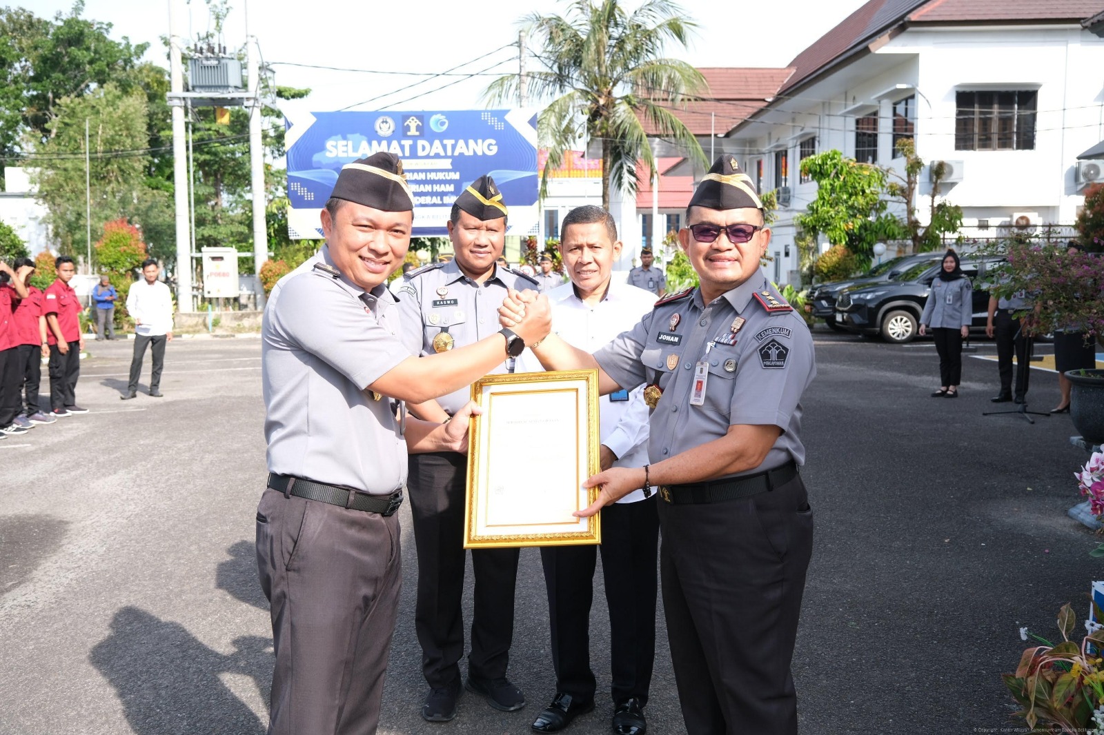 Namun, apel pagi kali ini terasa lebih istimewa. Suasana lapangan apel seketika menjadi semakin hangat dan penuh antusias ketika kegiatan dirangkaikan dengan agenda penyerahan sertifikat hak cipta kepada salah satu pegawai berprestasi, Jumaedi. Ia berhasil mengembangkan sebuah inovasi digital berupa aplikasi FUMA (Form Uang Makan), sebuah sistem yang dirancang untuk mendukung proses administrasi uang makan agar menjadi lebih cepat, efisien, dan minim kendala teknis.