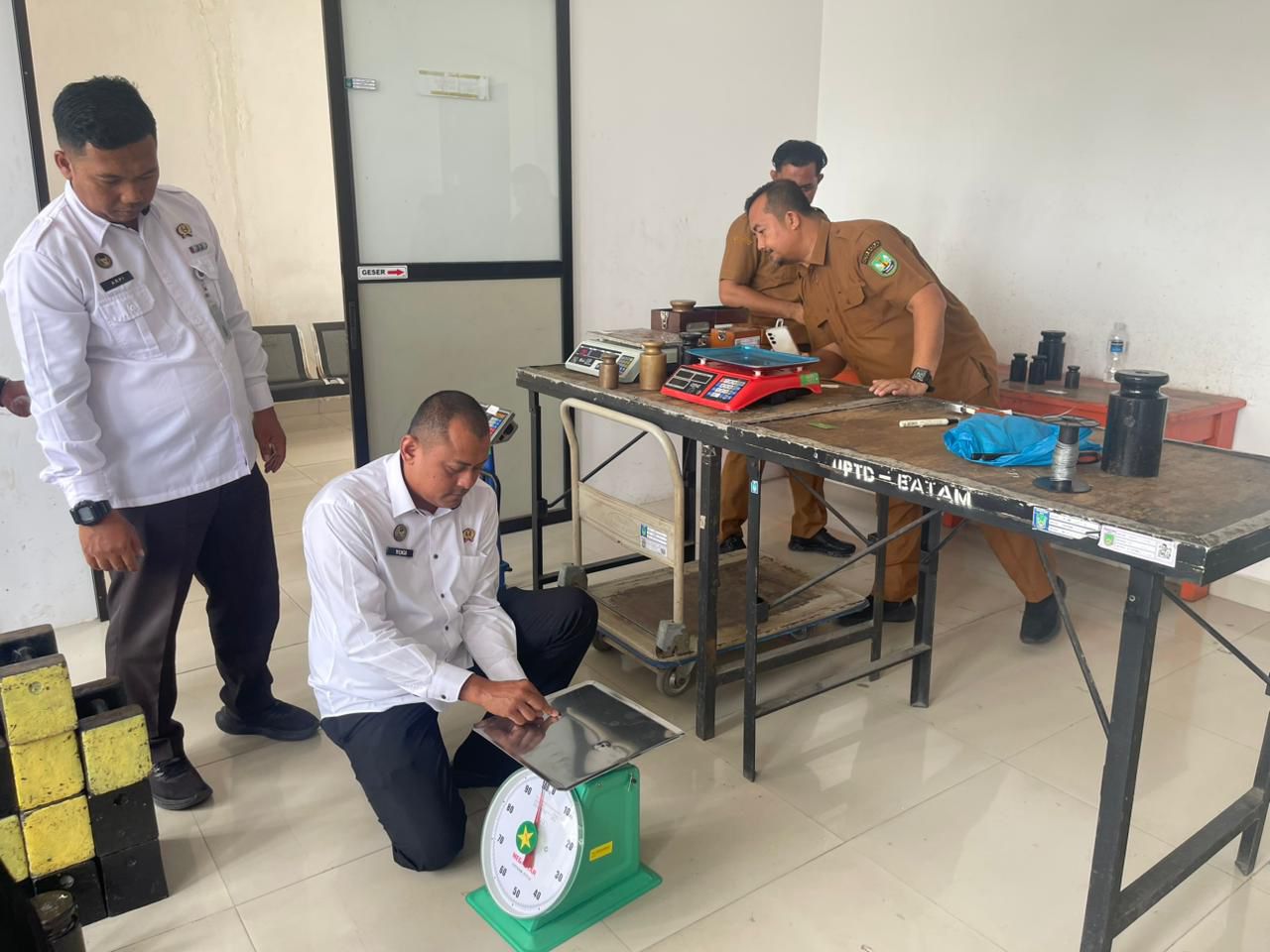 Tim LPKA Batam yang terdiri dari Kasi Pembinaan Arpiyanto, Kasubsi Perawatan Yogi Herliansyah, beserta staf terkait, membawa langsung timbangan dapur untuk diperiksa, diuji, dan dikalibrasi oleh Tim Metrologi Legal Kota Batam.