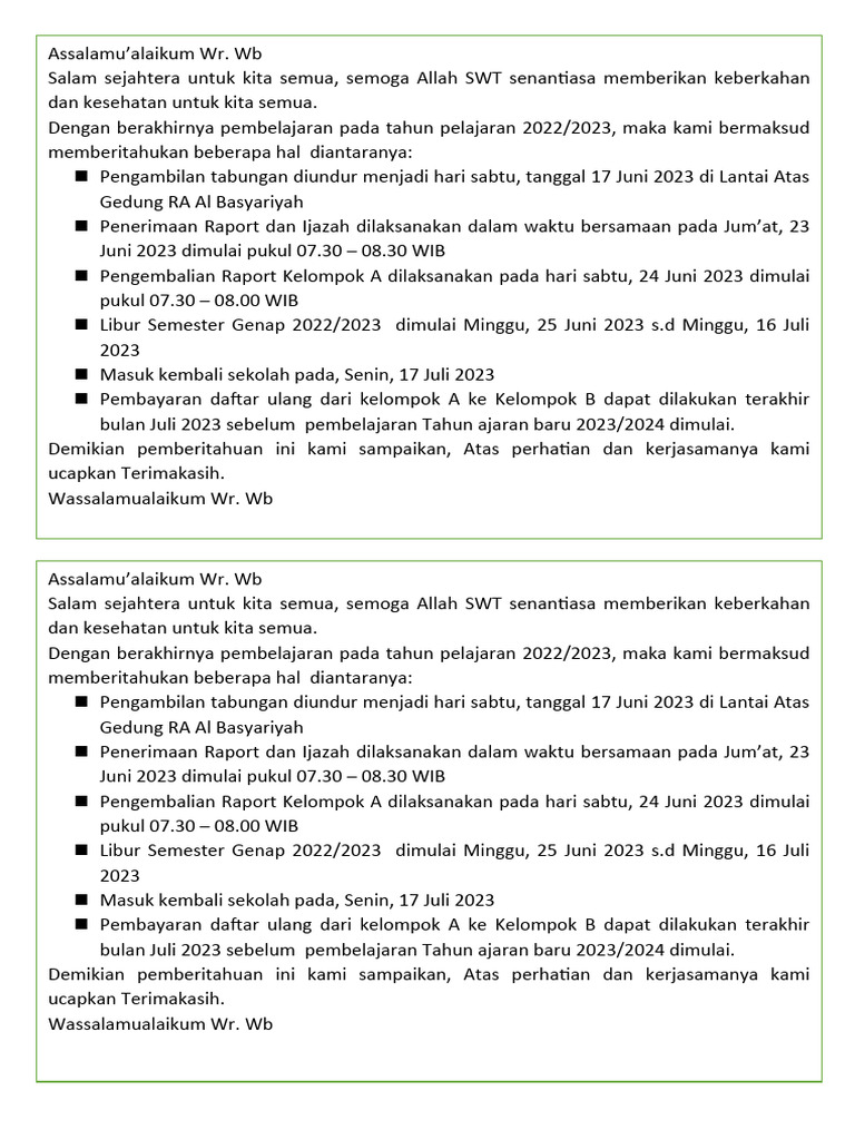 Aturan ini tidak hanya menekankan keamanan dan perlindungan anak, tetapi juga mendorong keterlibatan positif keluarga dalam aktivitas sehari-hari. Dengan pengawasan yang baik, liburan akhir tahun dapat menjadi waktu istirahat yang berkualitas sekaligus peluang bagi anak untuk berkembang dalam suasana yang aman, nyaman, dan bermakna.