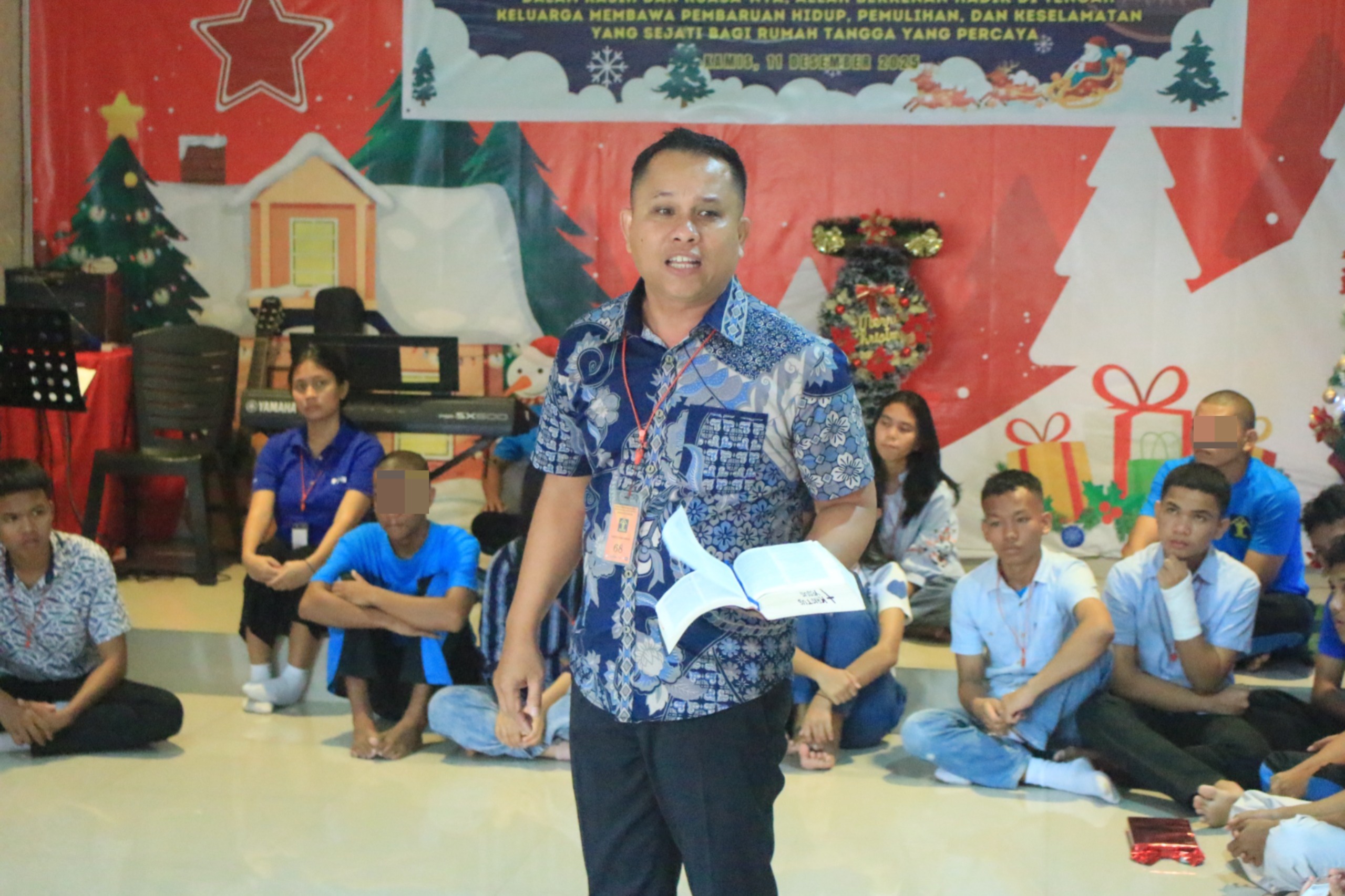 Pdt. Jundo menggarisbawahi kelahiran Yesus Kristus sebagai kabar sukacita universal, membawa damai, dan membangkitkan harapan—pesan yang sangat relevan untuk menguatkan semangat pengharapan anak binaan.